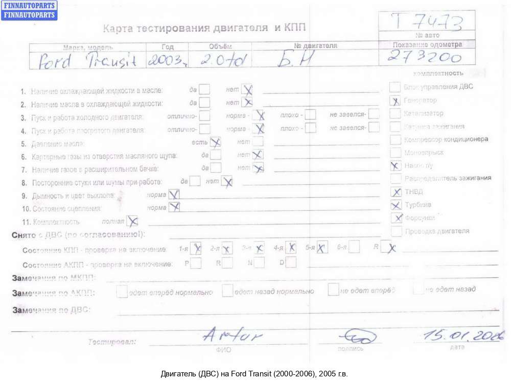 2005; Дизель; 2.4; FXFA, TDDI; Микроавтобус; ; белый; 2005, 2.4л, Дизель, TDDI, FXFA, бн, 1489248, Микроавтобус, белый, Фото не актуально, с запчасти отделены: Форсунка топливная, Форсунка топливная, Форсунка топливная, Форсунка топливная, ТНВД, Турбина, Генератор, Маховик, бн | - | Н, прокручивается, состояние ГРМ - нормально, поддон - нормально, клапанная крышка - нормально, эмульсия - нет, 2 массовый,