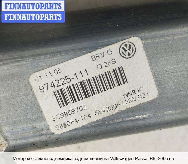 | Стеклоподъемник задний левый | VOLKSWAGEN PASSAT B6 |